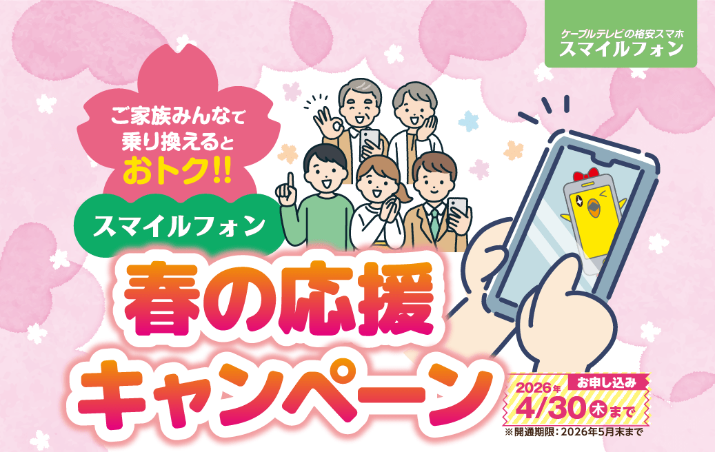 ケーブルテレビのスマホ「スマイルフォン」をお得に始めるなら今がチャンス!4月30日(木)までの限定キャンペーン を実施中です!