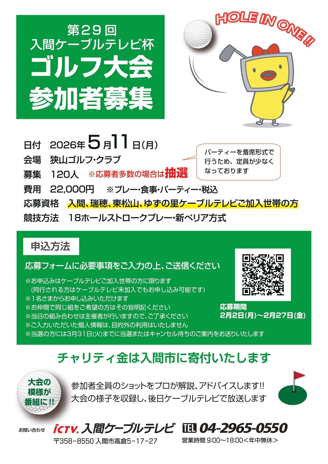 【募集終了】入間ケーブルテレビ杯ゴルフ大会開催のお知らせ
